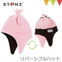 顔だけ出してとてもかわいい!耳まですっぽり覆ってあたたかい。あごの下で留められるリバーシブルなベビー帽子。STONZ(ストーンズ)リバーシブルハット ピンク×ピンク/ブラウン |防寒 ベビー帽子 フリース 脱げない あごの下で留める 冬用 耳あて