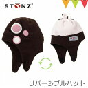 顔だけ出してとてもかわいい!耳まですっぽり覆ってあたたかい。あごの下で留められるリバーシブルなベビー帽子。STONZ(ストーンズ)リバーシブルハット ブラウン×クリーム |防寒ベビー帽子