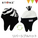 顔だけ出してとてもかわいい!耳まですっぽり覆ってあたたかい。あごの下で留められるリバーシブルなベビー帽子。STONZ(ストーンズ)リバーシブルハット ゼブラ×クリーム/ブラック |防寒 ベビー帽子 フリース 脱げない あごの下で留める 冬用 耳あて