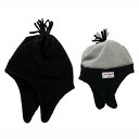 顔だけ出してとてもかわいい!耳まですっぽり覆ってあたたかい。あごの下で留められるリバーシブルなベビー帽子。STONZ(ストーンズ)リバーシブルハットブラック×グレー |防寒ベビー帽子