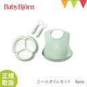 【ラッピング・のし無料】【日本正規品】ギフトに人気なベビー食器4点セット専用ギフトBOX入りで出産祝いに最適ベビービョルン ミールタイムセット 4pcs パウダーグリーンソフトスタイ、プレート フォーク&スプーンのセット|babybjorn ベビ-ビヨルン ベビー食器 出産祝い ギフト お食い初め