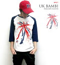 ROCK & PUNKなグラフィックデザイン!! バンビマークとユニオンジャックが合体=====♪ Tシャツ屋さんバンビのオリジナルブランド BPGT(S M Lサイズ 男女兼用)UKバンビ ラグランスリーブTシャツ - sp008-rg -X- ロックTシャツ パンクTシャツ アメカジ ネイビー 紺色 かっこいい バンド ロンドン イングランド オリジナルブランド 7分袖 七分袖 メンズ レディース ユニセックス コットン綿100%【RCP】