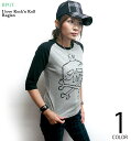 SKULL と オンプが合体しちゃった☆ 程よい厚みのすっきりとした3/4スリーブのラグランタイプ!! オリジナル(XSサイズ Sサイズ Mサイズ Lサイズ )スカルオンプ ラグランスリーブTシャツ - sp005-rg -X- 7分袖 七分袖 カットソー ロック ROCK ドクロ柄 髑髏 ガイコツ アメカジ カジュアル かっこいい プリント メンズ レディース 男女兼用ブランド コットン綿100% Tシャツ屋さんバンビ【RCP】