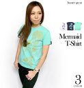 人魚の綺麗なシルエットのTシャツ!! 夜の海、夜空にはまばゆい光達が、、、☆ オリジナルTシャツ(XXS XS S M Lサイズ 半袖Tシャツ)2weekセール!・マーメイド (Mermaid) Tシャツ (ミントグリーン) baster great バスターグレード bg005tee-mg -X- 半袖 緑色系 人魚 にんぎょ 童話 どうわ イラストレーション きれい 綺麗目カジュアル メンズ レディース ユニセックス 大きめサイズ コットン綿100%