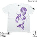 人魚の綺麗なシルエットのTシャツ!! 夜の海、夜空にはまばゆい光達が、、、☆ オリジナルTシャツ(XXS XS S M Lサイズ 半袖Tシャツ)マーメイド (Mermaid) Tシャツ (ホワイト) baster great バスターグレード bg005tee-wh -X- 半袖 白 トップス 人魚 童話 イラスト プリント コラボTシャツ かわいい 可愛い カジュアル メンズ レディース ユニセックス 大きめサイズ コットン綿100%【RCP】