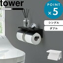 【送料無料】トイレットペーパーホルダーに簡単に取り付けができる収納ラック マラソン中+4倍/ tower 《 山崎実業 トイレットペーパーホルダー上ラック 2段 タワー 》 小物置き 棚 トレー 収納 シンプル スペース トイレットペーパーホルダー トイレ用品 トイレ トイレ収納 簡単設置 スマホ 掃除用品 公式 ホワイト ブラック 4394 4395 YAMAZAKI