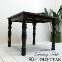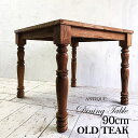 オールドチーク(古木)で製作した、一生もののダイニングテーブル。90mmの極太脚が比類無きデザインとなってます。ダイニングテーブル アンティーク チーク オールドチーク 机 テーブル クラシック 90cm 2人用 4人用 木製 無垢材 カフェ 北欧 アジアン家具 モダン レトロ おしゃれ 古木 古材