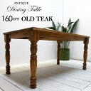 オールドチーク(古木)で製作した、一生もののダイニングテーブル。90mmの極太脚が比類無きデザインとなってます。アジアン家具 オールドチーク チーク ダイニングテーブル 160cm 4人 6人 天然木 チーク家具 テーブル 食卓テーブル ろくろ脚 木製 リビング アジアン モダン カフェ 送料無料