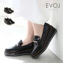 セール EVOL パンプス ラウンドトゥ 厚底 25cm 25.5cmアウトレット イーボル ローファー アーモンドトゥ ヒール5cm ローヒール プラットフォーム ビット レザー エナメル 大きいサイズ ブラック 9636