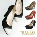 【SALE】 日本製 本革 異素材コンビ 太ヒール パンプス【訳あり】【アウトレット】 セブントゥエルブサーティー パンプス スエード パーティ バイカラー ヒール10cm ラウンドトゥ VII XII XXX ヒール (105165) 美脚 スエード 靴 【送料無料】
