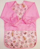 お食事エプロンロングタイプ(犬柄ピンク) ベビー保育園 おしゃれ かわいい 大きめ 前面防水 撥水 保育園 ベビー 日本製