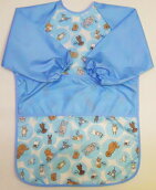 長袖お食事エプロンロングタイプ(犬柄サックス) ベビー保育園 おしゃれ かわいい 大きめ 前面防水 撥水 日本製