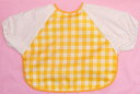 半袖お食事エプロン [チェック ・イエロー} 立体ポケット]