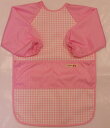 前身強力撥水の厚手生地です。お食事エプロン 長袖 立体ポケット 保育園 ベビー【前身強力撥水の厚手生地です】カラー:「中格子ピンク」
