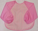 前身強力撥水の厚手生地です。お食事エプロン 長袖 ロングタイプ 保育園 ベビー【前身強力撥水の厚手生地です】カラー:「中格子ピンク}