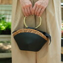 ゴールドのリングハンドルが華やかなアクセント【SALE 30%OFF】The Bagmati(ザ バグマティ)/レザー×ウィッカー リングハンドバッグ/BBK23-SS10MR【返品交換不可】