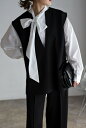 きちんとさと抜け感のバランスがとれた前後2WAYで着られるボウタイブラウス前後2way シャツ ブラウス 長袖 ボウタイ 上品 レディース トップス 春 秋 冬 きれいめ レイヤード ゆったり 軽量 軽い フリー 白 ホワイト ボンジュールサガン 前後2WAYボウタイブラウス