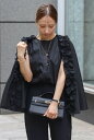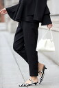 オーガンジーケープブラウスとスリットスラックスの上品フェミニンなパンツセットアップオーガンジードッキングケープブラウス×フロントスリットパンツセットアップ 77-003837