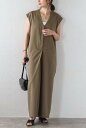 抜け感のあるVネックが大人っぽい。キレイめオールインワンフロントタックVネックオールインワン 77-003813