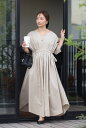 デイリーからオフィスまでエレガントに着回せるロングワンピースウエストドロストタックフレアワンピース 77-003834