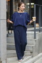 軽やかでエレガントなフリルブラウスとタックパンツの優雅なセットアップ袖フリルチュニックブラウス×ストレートパンツセットアップ 77-003836