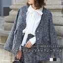 トレンドライクなクラシカルツイード、フリンジで魅せる大人ジャケット 77-004464ツイード Vネック レディース トップス 春 秋 冬 きれいめ ジャケット 羽織 フリー 黒 ネイビー 白 オケージョン 入学式 入園式 BONJOUR SAGAN ボンジュールサガン ツイードフリンジVネックジャケット