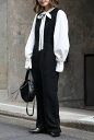 華やかさと抜け感のあるオケージョンスタイル!ブラウス×サロペットの嬉しい2点セットENC エンク sheer blouse × deep V neck tuck overall / シアーブラウス×杢調ディープVネックタックサロペット 77-004696