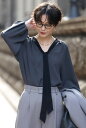 オーバーサイズのシルエットでさらっと着られるボウタイドルマンブラウスボウタイドルマンシャツブラウス 77-003073/77-002786