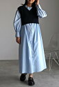 スタイルアップが叶う、異素材ドッキングワンピースウエストドロストドッキングワンピース 77-002347