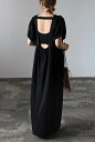 たっぷりギャザーのパフスリーブがフェミニンなバックオープンワンピースバックオープンパフスリーブコクーンワンピース 77-002538