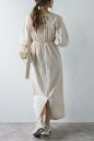 スキッパーデザインが大人の抜け感。ボリュームスリーブワンピースリネンライクボリュームスリーブワンピース 77-003539/77-002528