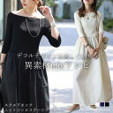 大人の余裕を漂わせる、パッド付きバックオープンワンピ 77-004874カップ付き リブ ワンピース パッド付き カップ 付き ワンピース ワンピ リブ ニット リブニット ワンピース ワンピ 着痩せ 体型カバー 【 パッド付バックオープンリブカットワンピース 】