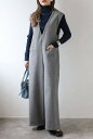 動きやすさと美しさを兼ね備えたエフォートレスオールインワンウールタッチVネックオールインワン 88-004385