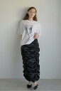 シャーリング×サスペンダーが魅力のモードなスカートshirring suspender skirt / シャーリングサスペンダースカート 77-004475