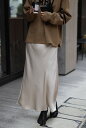 上品な光沢を味方に。華やぎを纏うサテンスカートリンクルサテンドロストスカート 77-004896