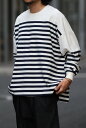 こなれ感漂う大人のロンT\新色ホワイト×ネイビー登場!/切替ロングスリーブT 55-003066/55-002392