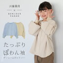 一枚で可愛く決まる!ボリュームスリーブトップス 77-004842\マラソン限定!5000円以上購入で15%OFFクーポンで4395円/【川島菜月さんコラボ】トップス Tシャツ ボリューム袖 ゆったり 春 長袖 お洒落 ボリュームスリーブカフスデザイン 袖口ゴム 男の子 女の子 ボリュームスリーブカフスデザインカットソー