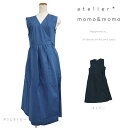 | カシュクールタイプのエプロンドレス。シンプルでふんわりとしたシルエットがおしゃれなエプロン。カシュクールマルチドレス atelier momo&momo アトリエモモアンドモモ PS40600 エプロン 大人 きれいめ デニム調 やわらかい
