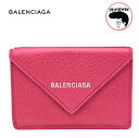 使いやすいミニ財布【中古】未使用品 バレンシアガ BALENCIAGA ペーパーミニウォレット 三つ折り財布 ピンク