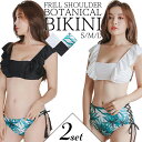 ビキニ 水着 レディース 体型カバー オフショル 可愛いトレンドデザインだけでなく袖のフリルや、ハイウエストなど体型カバーができるのもポイント【 SALE! 最終在庫処分 】ビキニ 水着 レディース 体型カバー 2点セット 大人 オフショル オトナ女子 セクシー ハイウエスト 女性用 ホルターネック ミセス 大きいサイズ ママ水着 おしゃれ パッド付き 黒 白 盛れる かわいい 夏 海 プール ビーチ 水着