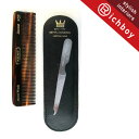 コームには天然綿を主原料にしたセルロースアセテート(天然繊維素樹脂)という、最も自然に近いといわれている素材が使用されています。その成分は、いずれも天然に存在し、若干の生分解性を持つとされています。そのため、直接肌に触れてもアレルギーなどが起こりにくいと言われている優しい素材でもあり、静電気も起きにくく、髪や頭皮によくなじみます。工程には12段階にもおける作業があり、カットした後のコームを機械によって表面を滑らかにする工程は10時間にも及びます。また、最後には手作業にて表面を滑らかにし、1本1本丁寧に作り上げていきます。丸く磨かれた歯先は、頭皮や髪に優しく、髪通りをとてもなめらかにしており、毛髪に傷をつけたり頭皮にダメージを与えることが少ないコームであると言えます。タイプは、普通歯・粗歯のコームと、1本に普通歯と粗歯を組み合わせている両歯タイプのコームがあり、メンズ・レディスの表記がありますが、基本的にはユニセックス仕様になります。・普通歯のコーム:毛の量が少なく、髪の細い方に・粗歯のコーム:毛の量の多い方、ウエーブの強い方に・両歯タイプ:普通歯はなでつけや仕上げ用として、粗歯は自然なスタイルに仕上げたいときに使い分けができますKENTと呼ばれていますが、正式にはGB Kentの表記になります。当店のKENT製品は英国製、ライセンス商品とは異なります。贈り物に最適、ベビーブラシもおすすめです。