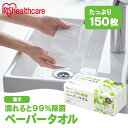 除菌ペーパータオル ペーパータオル 除菌 手拭きペーパー 紙タオル 使い捨てペーパータオル 中判 薄手 150枚 ハンドタオル 濡れると99%除菌 除菌シート 清潔 拭き掃除 キッチン 食卓 使い捨て 紙タオル 新生活 アイリスオーヤマ JPT-150 *