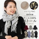 ストール/レディース/大きめ/形が決まる/フェザー刺繍/あたたかい/ソフトウール/柔らかい/防寒//クリスマス/お出かけ/秋冬ストールストール レディース ウール ウール100% シャーリングストール マフラー 刺繍【ウール100% スパンコール刺繍シャーリングストール】ウール100% ストール レディース 日本製 シャーリング ソフトウール 秋冬ストール レモン フェザー