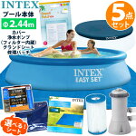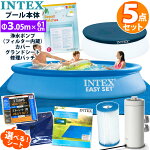 5点セット【INTEX】インテックス イージーセット プール 244#28106 深さ61cm 円形 丸型 カバー グランドシート ポンプ フィルター カ浄水 トリッジ リペアパッチ 修理シール 2.44 m 家庭用 大型 ビニールプール 温水 保温 循環 ポンプ 循環ポンプ