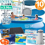 10点セット【 INTEX インテックス 】イージーセットプール 396 深さ84cm形 丸型 ソーラー カバー グランドシート ポンプ 交換 フィルター カートリッジ 6本 ソーラーマット ラダー フットバス リペアパッチ 3.96m 家庭用 大型 ビニールプール 保温 温水 太陽光 エコ約4m