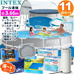 11点セット【INTEX】インテックス プリズム フレーム プール 366 ×76円形 丸型 3.66 cm 3m 4m 大型 キャノピー 屋根 ソーラー カバー グランドクロス 循環 ポンプ 交換 カートリッジ ラダー フットバス リペアパッチ 掃除網 修理シール 家庭用 プールセット セット