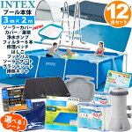 12点セット【 INTEX】インテックス フレーム プール 300 ×200×753 m 大型 ソーラー カバー グランドクロス キャノピー ポンプ 交換 カートリッジ フィルター ラダー フットバス ソーラーマット 掃除 ネット リペアパッチ 家庭用 プールセット セット レクタングラー
