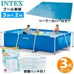 3点セット【INTEX】インテックス フレーム プール 300 ×200×75ソーラーカバー リペアパッチ 手軽 シンプル 3 m 大型 レクタングラー 修理シール 家庭用 プールセット プール セット 夏休み 大きい プール遊び 子供 庭遊び 大型フレームプール プールインテックス