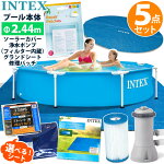 5点セット【 INTEX インテックス 】メタル フレーム プール 円形 28205 2.44m 深さ51cm244 cm フィルター 循環 ポンプ カートリッジ ソーラー カバー ブルーシート グランドクロス 修理パッチ 大型 家庭用 子供 喜ぶ ビニールプール 空気入れ不要 プールセット 保温 温水
