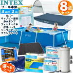 8点セット【 INTEX インテックス 】 フレームプール 300 ×200×75レクタングラー 専用 カバー グランドクロス キャノピー ポンプ カートリッジ ソーラーマット リペアパッチ 家庭用 大型 プールセット プール セット 循環 ポンプ 循環ポンプ 温水 太陽光 夏休み 庭